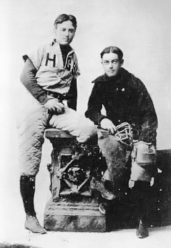 (QUIZ ENTRY: None other than Charles Ives, star pitcher of the Hopkins Grammar School baseball team. The teammate’s name is not known.)